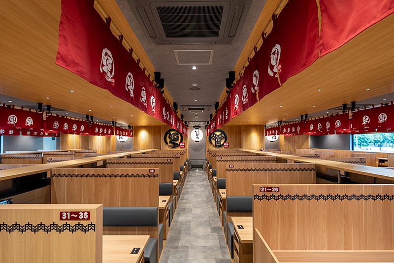 廻転レーン、セミセルフレジ、タッチパネルによる注文システムなど非接触に十分配慮した設備を導入し、安心してお食事いただける環境をご用意しております。