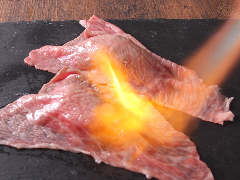 A5和牛の炙り寿司~アンデス岩塩仕立て~
