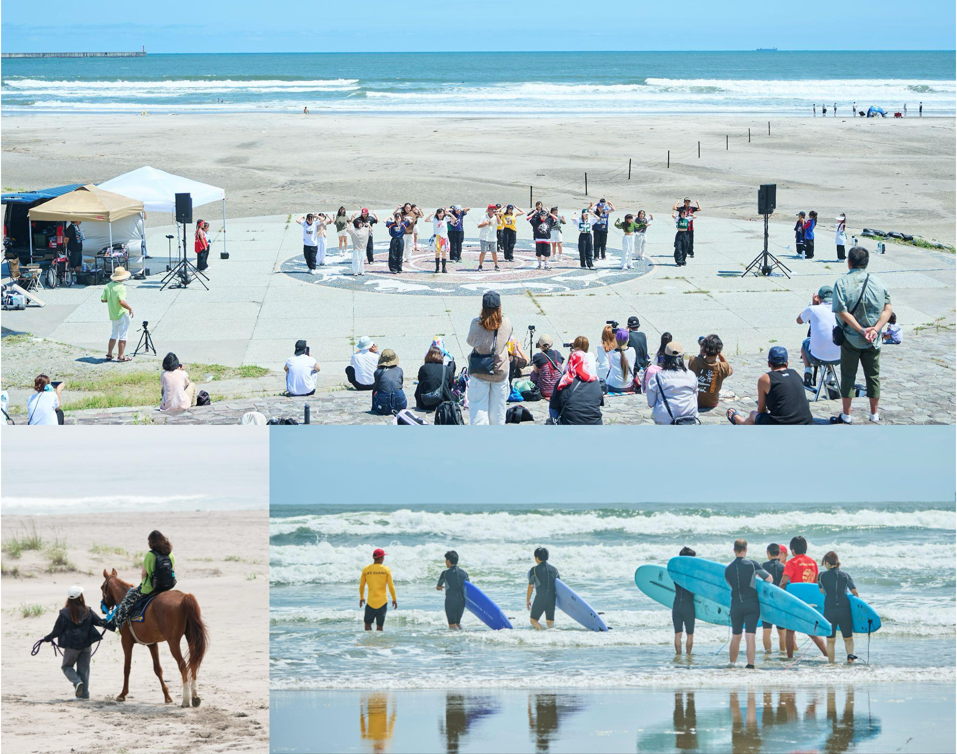 北泉海岸の海開きを祝う「北泉オープニングイベント」では、安全祈願祭のほか、乗馬体験、ビーチクリーンに加え、今年は福島もも娘・ABU’U、MAKOによるスペシャルパフォーマンスや、現地のライフセーバー隊「モンステラ」によるレスキューデモンストレーションを実施。多彩なコンテンツで海開き初日を盛り上げます。