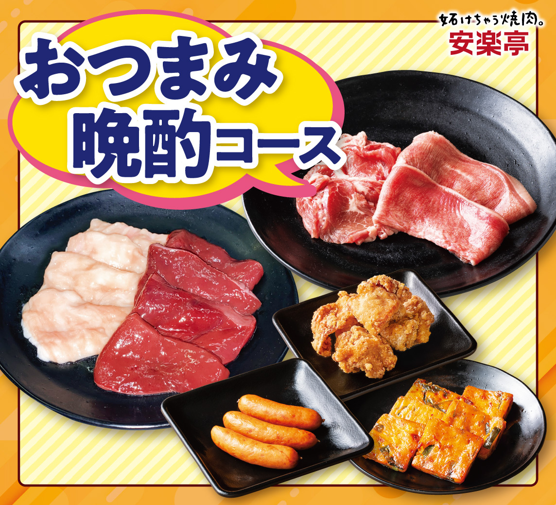 「居酒屋いく?いや、安楽亭で焼肉飲みしよ!」焼肉があれば、お酒もすすむ!「おつまみ晩酌コース」で今日は乾杯!