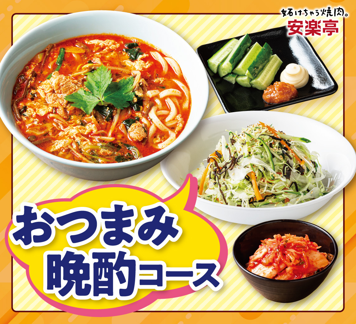 焼肉レストラン安楽亭(本社:埼玉県さいたま市)は、「おつまみ晩酌コース」(2,980円/税込3,278円)を10月28日から発売。“焼肉しながら飲みたい!”にぴったりな、飲み派のための食べ放題が登場。