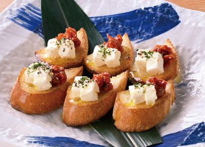 豆富は、ミネラル分を含んだ「藻塩にがり」を加えることで、[秋田リュウホウ大豆]と[青森オオスズ大豆]の二つの国産大豆本来の旨味を更に引き出しています。