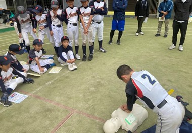 当社は、2025年8⽉7⽇(木)から9⽉20⽇(土)に開催された読売巨⼈軍主催の学童軟式野球⼤会『ジャビットカップチャンピオン⼤会2025』に協賛し、優勝チームである和泉少年野球チーム (東京都千代田区)に当社製AEDを副賞として贈呈したのち、心肺蘇生を含めたAED講習会を実施いたしました。