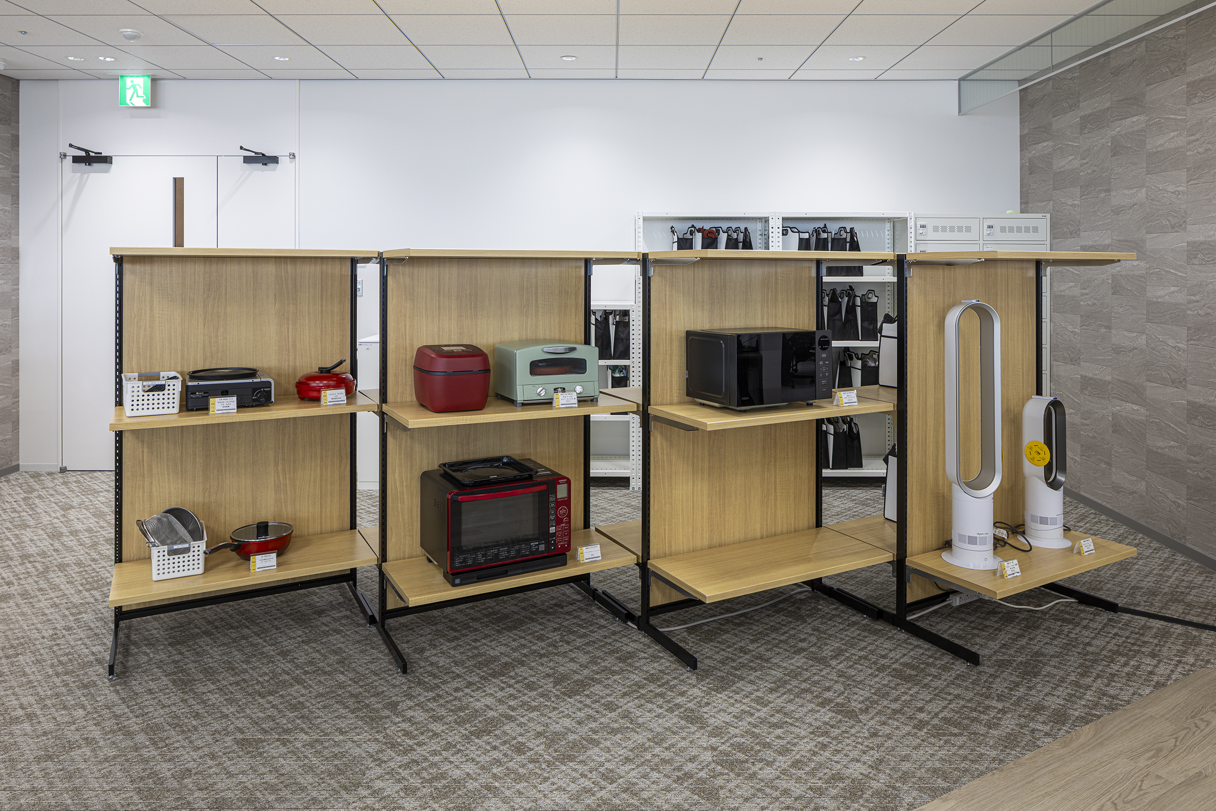 ジャパネットのコールセンターの特長でもある「実機コーナー」を広く配置。お問合せいただいた商品をすぐ手にとれる環境にすることで、視覚情報や触感・操作感などをより丁寧にお伝えできるようしています。