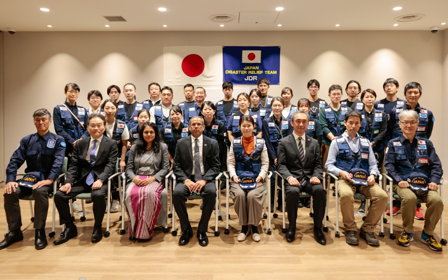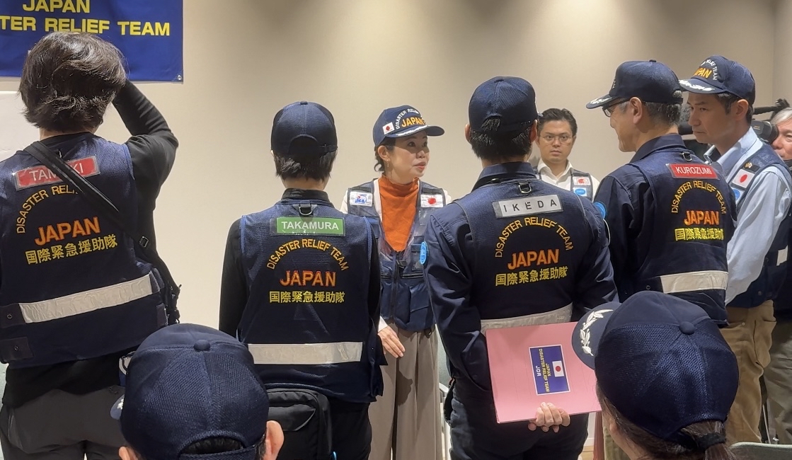 出発にあたって岩瀬喜一郎団長(外務省)は「スリランカは東日本大震災の時、被災地の石巻市で救援活動もしてくれました。お互いに助け合えることを嬉しく思います。自分自身スリランカに10年間勤務した経験を踏まえ、現地の人々に寄り添う支援を行いたい」と語りました。