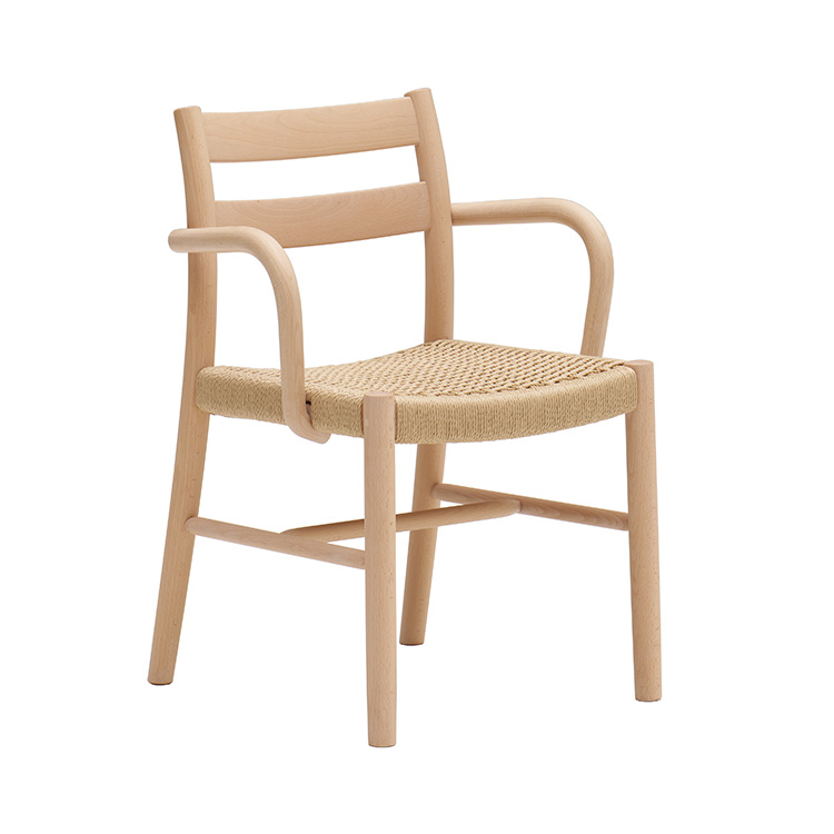 ミラノを拠点に活動するデザイナー武内経至氏と開発したダイニングセット〈CANTINETTA〉を、ポルタロマーナ地区の会場にてミラノで初披露します。本展示をきっかけにヨーロッパでの販売も開始します。イタリア語で“小さな食堂”を意味する本シリーズは、太めのラインと全体的に丸みを帯びた、力強くも愛らしいデザインが特徴です。チェアの背もたれは、万人にとって最適な背当たりを提供。脚やアームは有機的なカーブを描き、つい触れたくなるような優しい印象を与えます。また、チェアと合わせてデザインされたテーブルは、まるで長い年月をかけて角が取れたかのような、穏やかな輪郭の天板が特徴で、空間に自然と馴染むようにデザインされています。